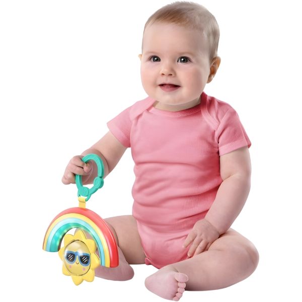 El juguete musical colgante para bebé Bright Starts Rainbow Shake & Glow, presenta un diseño divertido y colorido para estimular los sentidos de la vista, oído y tacto del bebé. Fabricado en plástico, este juguete interactivo es ideal para niños a partir de 3 meses. Con dimensiones de 7 x 12.7 x 2.54 cm, el Sun Shaker cautiva la atención del bebé con sorpresas de "causa y efecto", como un arcoíris brillante y melodías alegres. El bebé puede activar luces y música con un simple movimiento de sacudida, fomentando la motricidad fina. El sol giratorio muestra diferentes caras en cada lado, incluyendo una con gafas de sol. Perfecto para llevar durante el viaje, se puede colocar en asientos de automóvil o cochecitos para añadir diversión en movimiento.