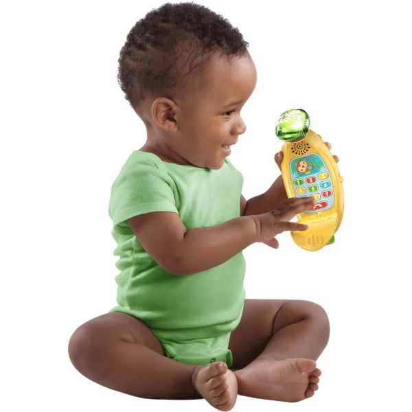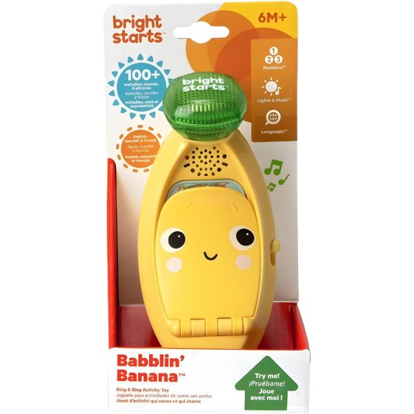 Este juguete es ideal para el desarrollo de habilidades motoras, proporcionando entretenimiento interactivo a través de diversas funciones. Sus dimensiones compactas lo hacen fácil de manipular para manos pequeñas. Al presionar los botones del teléfono, el Babblin' Banana activa música y luces, ofreciendo más de 100 melodías, frases y sonidos divertidos. Además, proporciona una experiencia educativa al enseñar números, colores y vocabulario en tres idiomas: inglés, español y francés. El teléfono con tapa afrutada no solo reproduce música, sino que también se ilumina, agregando una dimensión visual atractiva para el bebé. La diversidad lingüística en las interacciones contribuye al desarrollo cognitivo. La estructura de este juguete invita al bebé a explorar al abrir el teléfono tipo banana, estimulando la curiosidad y la coordinación mano-ojo. Además, es un compañero de viaje conveniente, sin necesidad de cargas de larga distancia. El Bright Starts Babblin' Banana es más que un juguete; es una herramienta educativa y entretenida que fomenta el desarrollo integral del bebé de manera clara, compacta y estimulante.