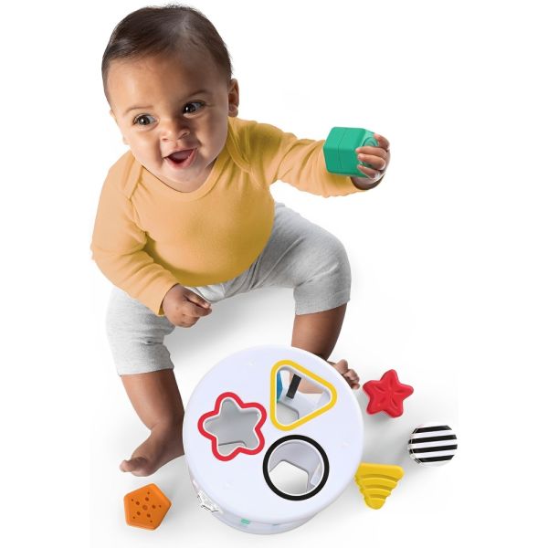 El juguete Baby Einstein Zen and Cal's Playground es la elección perfecta para estimular el desarrollo temprano de tu bebé. Este innovador juego de encastre está diseñado para ofrecer infinitas formas de jugar, descubrir y explorar, convirtiéndose en el compañero ideal para los niños desde los 6 meses de edad. Con su vibrante diseño multicolor, este juguete no solo captura la atención de tu pequeño, sino que también fomenta su crecimiento cognitivo y sensorial. Incluye 6 bloques de formas texturizadas que el bebé puede alcanzar y agarrar a través de suaves bandas elásticas, promoviendo la confianza y la independencia. Los bloques y los elementos en blanco y negro de alto contraste están diseñados para ofrecer una estimulación sensorial completa. Además, los bebés pueden disfrutar girando las cuentas, personajes y bloques de espejos, lo que estimula su curiosidad y habilidades motoras finas. Este juguete sensorial es un recurso educativo que transforma el tiempo de juego en una experiencia enriquecedora, ayudando a tu bebé a clasificar formas y participar en juegos imaginarios.