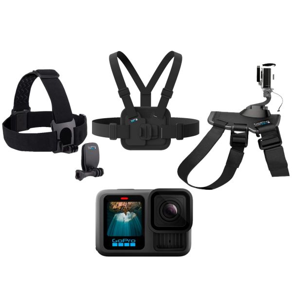 El Kit GoPro Hero 13 Black es un completo set de accesorios para llevarla al límite. Este kit incluye tres monturas versátiles: para perro, casco y pecho, ideales para deportes extremos, paseos, viajes y grabaciones inmersivas desde nuevas perspectivas. Este kit es ideal para creadores de contenido, deportistas y aventureros que buscan calidad profesional, versatilidad y resistencia en una sola cámara de acción.
