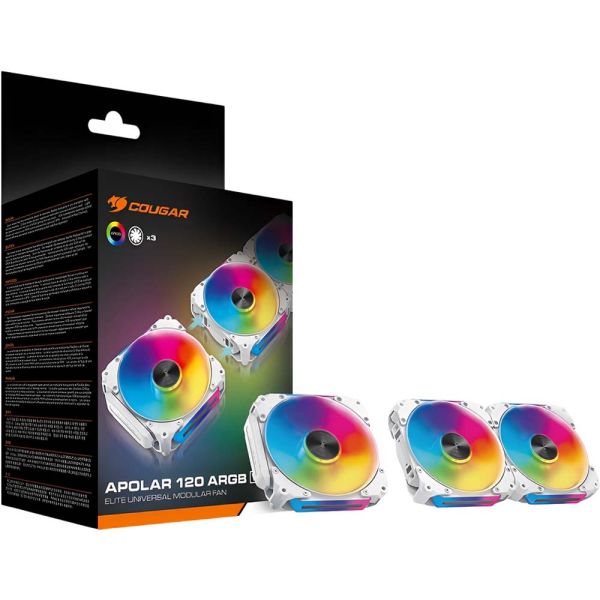El Cooler Cougar modular universal Elite Apolar 120 ARGB combina un rendimiento excepcional con un diseño estilizado y moderno. Su diseño completamente circunscrito maximiza el área de superficie de las aspas, proporcionando un flujo de aire eficiente y una espectacular iluminación ARGB. Con características avanzadas como la conectividad de liberación rápida, la tecnología de amortiguación Q-Stop para reducir el ruido, y los cojinetes hidrodinámicos HDB que prolongan su vida útil, este ventilador es ideal para quienes buscan una refrigeración de alta calidad sin comprometer el estilo.