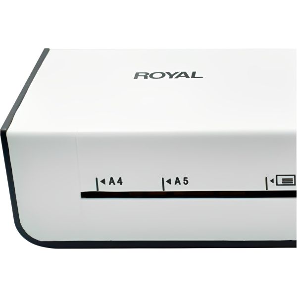 La plastificadora de Royal ofrece un acabado de gran calidad en un formato compacto, ideal para usar en el hogar, la oficina o el aula. Con guías nítidas y un sistema de alimentación de dos rodillos, la plastificación se realiza de manera rápida y sencilla. Compatible con tamaño de entrada A4 (23 cm) y con rodillos de laminación caliente a dos temperaturas, el dispositivo se calienta en 3-5 minutos y soporta bolsas de 3 a 5 mil (80 a 125 micrones) de grosor, con un espesor máximo de laminación de 0,4 mm. Incluye modo de reposo automático después de 60 minutos y un ciclo de trabajo recomendado de 30 minutos. La plastificadora cuenta con indicación óptica LED para el inicio y listo, laminación continua, liberación de atasco y viene con un kit de inicio. Funciona con un voltaje y corriente nominal de 220V-240V, 50-60Hz/1.0A, 245W.