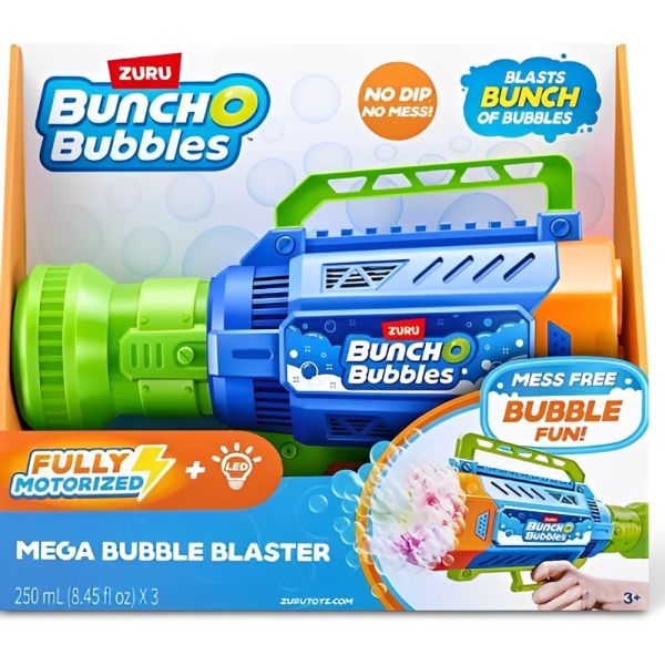Despídete del desorden y la complicación de hacer burbujas. Simplemente coloca la solución de burbujas en el contenedor fácil de recargar para crear un flujo continuo de burbujas ¡y comienza la fiesta! Con luces LED y baterías recargables, este Blaster proporciona horas de entretenimiento. Es fácil de usar, sin necesidad de sumergir ni ensuciar, e incluye tres paquetes de recarga de solución de burbujas y una batería recargable. Recomendado para niños de 3 años en adelante.