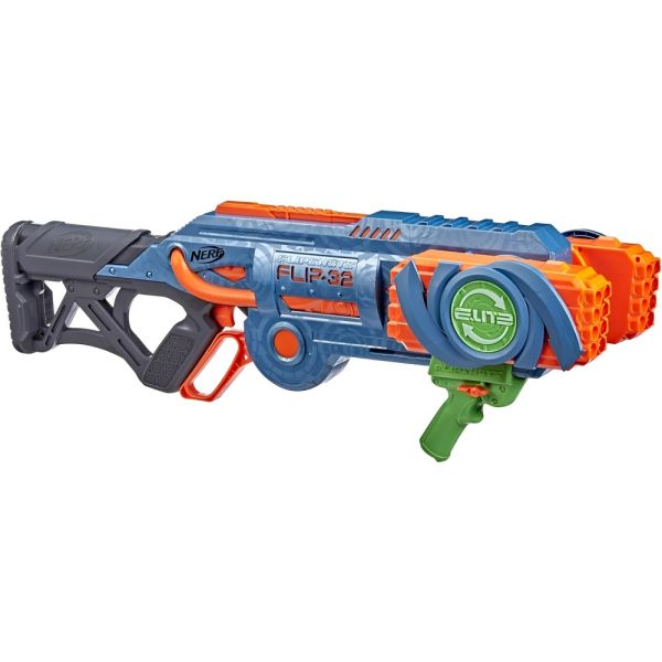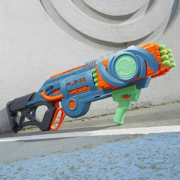 El lanzador de dardos Nerf Elite 2.0 Flip-32, es el aliado perfecto para los fanáticos de las batallas Nerf. Con 32 barriles en total, este innovador lanzador te permite permanecer en acción sin interrupciones. Equipado con 16 barriles delanteros y 16 traseros, el Flip-32 te da la opción de disparar dardos de espuma oficiales Nerf Elite de un modo continuo y estratégico. Simplemente lanza los primeros 16 dardos y, al girar el mango, activa los cañones traseros para sorprender a tus oponentes con los 16 disparos adicionales. Ideal para juegos al aire libre, garantiza emocionantes batallas que fomentan la agilidad y la estrategia. Podrás elegir entre disparar un dardo a la vez o aumentar el desafío al lanzar dos simultáneamente, ajustando el gatillo según tu táctica. Este versátil juguete es perfecto para niños y niñas apasionados por la aventura y la acción al aire libre.