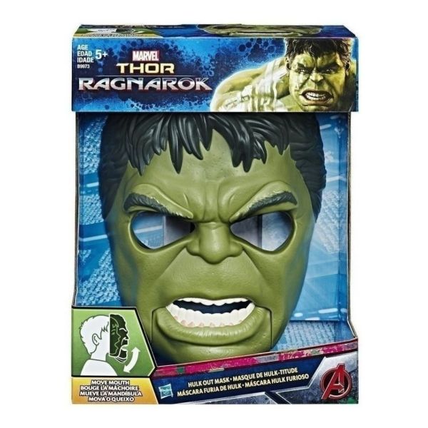 La barbilla de la máscara enojada de Hulk tiene boca y cejas móviles, por lo que los niños pueden imaginar que Hulk está irritado y hace un poderoso rugido "GRAAAWR". La máscara de enojo de Hulk presenta el icónico verde gamma y la autoexpresión enojada de Bruce Banner, ¡lo que permite a los niños fingir estar en batalla como el increíble Hulk!