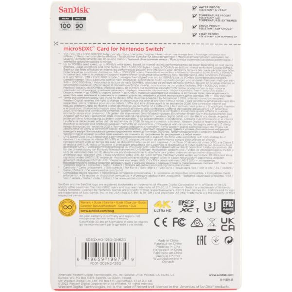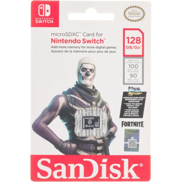 La memoria Micro SD Sandisk Nintendo Fortnite de 128 GB (modelo SDSQXAO-128G-GN6ZG) es de clase 10 y tipo SDXC UHS-I. Ofrece una velocidad máxima de lectura de 100 MB/s y una velocidad máxima de escritura de 90 MB/s, lo que la hace ideal para almacenar y transferir datos de manera rápida, especialmente en dispositivos Nintendo y otros compatibles.