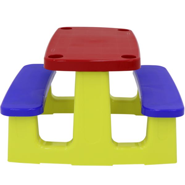 La Mesa Infantil con banco, fabricada de polipropileno libre de materiales tóxicos; es adecuada para la franja de edad de 24 meses en adelante, será una gran aliada para desarrollar las habilidades de los niños. Además, cuenta con porta lápices o vaso.