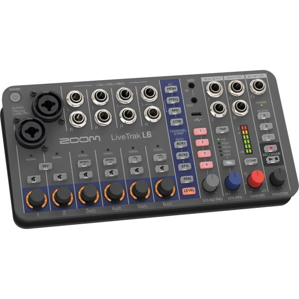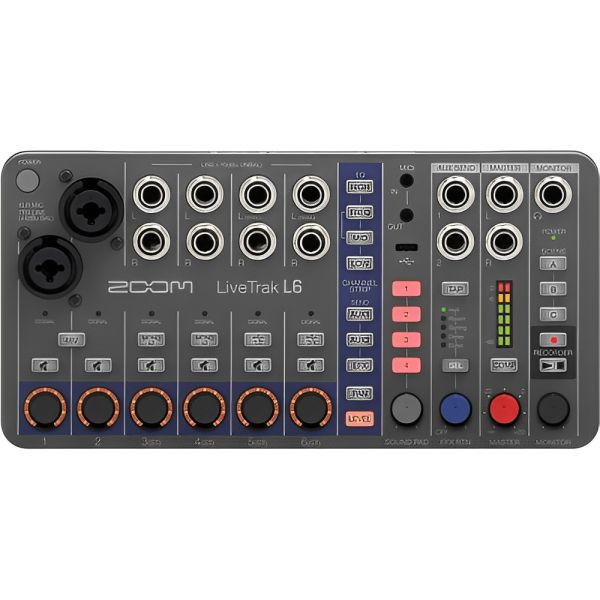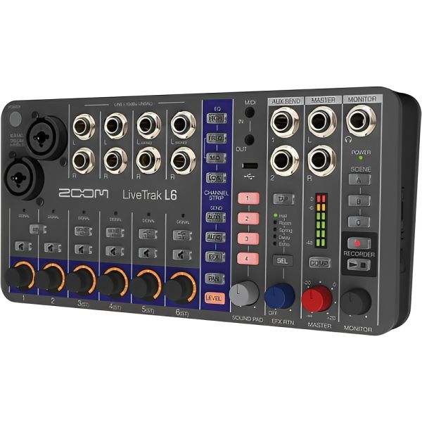 El Mezclador y Grabador Digital Zoom LiveTrak L-6 es un equipo compacto y portátil que redefine las posibilidades del audio en directo y en estudio. Con 10 canales de audio de calidad profesional, este mezclador es perfecto para grupos musicales, sintetizadores y streaming en directo. A pesar de su tamaño reducido, el L-6 ofrece funciones avanzadas de un gran mezclador, incluyendo ecualizador de 3 bandas, envíos auxiliares y efectos integrados. Su capacidad de grabación multipista permite almacenar 10 pistas independientes más la mezcla estéreo en tarjetas SD de hasta 1 TB, facilitando la edición posterior en cualquier DAW. La conexión MIDI y USB del LiveTrak L-6 ofrece una integración perfecta con equipos externos, como cajas de ritmos y sintetizadores, posibilitando el control de parámetros clave y la sincronización de efectos. Ideal para streaming de vídeo, este mezclador garantiza un sonido de calidad de emisión en cualquier lugar. Alimentado por pilas AA o un power bank USB, asegura horas de funcionamiento continuo. Con tecnología de 32 bits, compresión avanzada y controles LED, el L-6 ofrece un audio impecable y un control preciso, haciendo de cada actuación una experiencia profesional y memorable.
