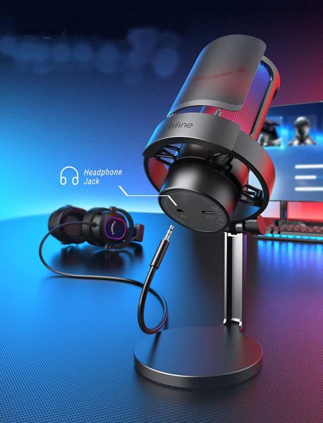 El micrófono Fifine A8 tiene un diseño elegante, es la combinación de respuesta de frecuencia de corte bajo y medios y agudos decentes brinda el audio más neutral. El soporte y el soporte antichoque están completamente instalados. También funciona en cualquier brazo articulado con el adaptador incluido. Los controles más útiles del juego: ganancia física y botón de tocar para silenciar. También el RGB se combina con cualquier configuración de juego, por medio de un botón que te dará 7 patrones distintos de iluminación, tú eliges si ser discreto o si quieres adaptarlo a tu juego o streaming y ponerlo a todo color. El RGB apagado y auriculares encendidos, active el modo de trabajo de forma rápida. El micrófono RGB mejora el atractivo de tu juego en vivo o imagen de video.