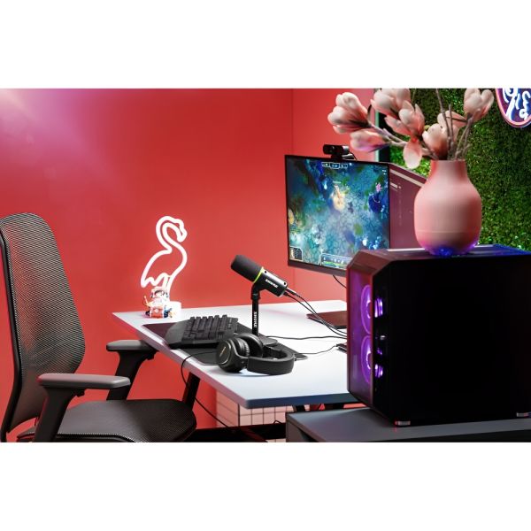 El micrófono Gamer Shure MV-6 USB-C es un dispositivo diseñado para revolucionar tu experiencia de audio tanto en gaming como en streaming. Este micrófono de Shure ofrece una calidad de sonido profesional con la facilidad de conexión USB-C, ideal para gamers y streamers que buscan claridad y precisión en sus transmisiones. Entre sus características destacadas, el MV-6 cuenta con tecnología avanzada de aislamiento de voz, asegurando que tu voz se escuche nítida y sin interrupciones. Equipado con el modo Auto Level, el micrófono ajusta automáticamente la ganancia en tiempo real, eliminando la necesidad de configuraciones manuales y garantizando un nivel de audio consistente. El MV-6 también incorpora un filtro antipop Digital Popper Stopper y un Denoiser en tiempo real para reducir ruidos no deseados, permitiéndote concentrarte en lo que realmente importa: tu contenido. La función de silenciar con un toque te brinda privacidad instantánea, mientras que el soporte de escritorio con base redonda asegura una instalación sencilla desde el primer momento. Inspirado en los icónicos modelos SM7 y MV7, este micrófono es un paquete completo para quienes buscan llevar su sonido al siguiente nivel, ya sea durante una intensa partida de videojuegos o en una conversación relajada con tus seguidores.
