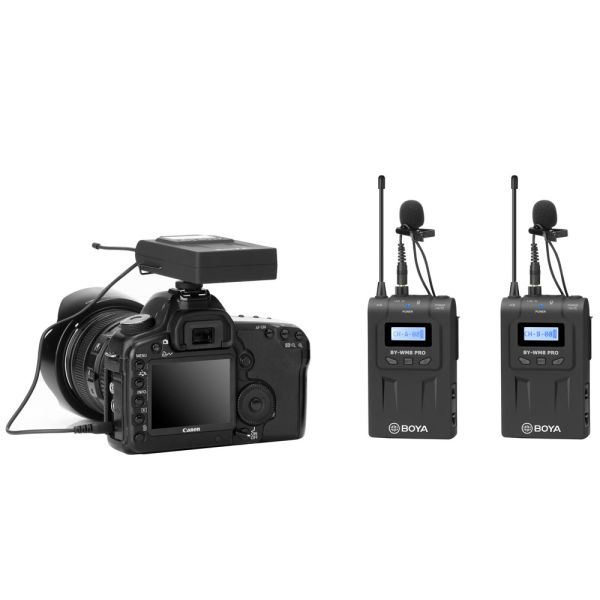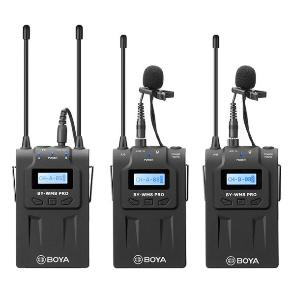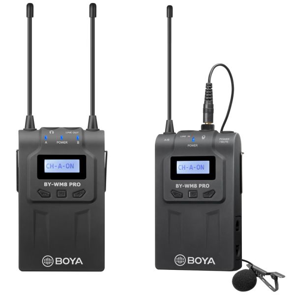 El Boya BY-WM8 Pro K2 Kit de Micrófono Inalámbrico 2TX+1RX es un set de micrófono inalámbrico para todas tus entrevistas o producciones de películas. El set está formado por dos transmisores, dos micrófonos lavaliers y un receptor. Todo el sistema es perfecto para DSLR, Mirrorless, Pro Video y todo tipo de cámaras o grabadoras de audio portátiles con entrada de micrófono de 3,5 mm o XLR. Es ideal para capturar entrevistas, diálogos de películas, grabaciones de campo, retransmisiones televisivas, recopilación de noticias, vlogs, vídeos de YouTube y mucho más.Características:Incluye Dos Transmisores y Un Receptor.Receptor inalámbrico de doble canal adecuado para cámaras, videocámaras, etc.Ideal para capturar entrevistas, diálogos de películas, grabaciones de campo.Transmisión de televisión, recopilación de noticias, etc.48 canales UHF seleccionables.Sonido con calidad de transmisión.Modo estéreo y mono seleccionable.Con función de silencio.Pantallas LCD de fácil lectura.Función de bloqueo automático de LCD.Monitoreo de sonido por salida de auriculares (Receptor).