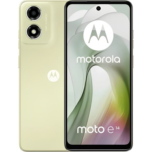 El Motorola Moto E14 XT2421-12 Dual ofrece una experiencia visual nítida y envolvente con su pantalla IPS LCD de 6.56 pulgadas y una resolución de 720 x 1612 píxeles. Equipado con una cámara principal de 13 MP, captura imágenes claras y detalladas, mientras que su cámara frontal de 5 MP es ideal para selfies y videollamadas. Este dispositivo combina un rendimiento confiable con funcionalidades esenciales, haciendo que sea una excelente opción para el uso diario.