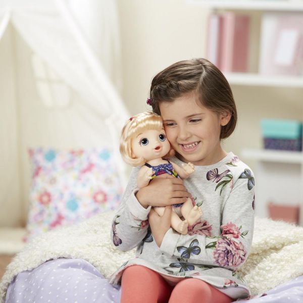 Hasbro presenta esta muñeca que ama comer sus alimentos, está creada para que los niños puedan interactuar y aprender la importancia de la alimentación. Están incluidas dos preparaciones de papitas que parecen muy reales, aparte de eso, emite más de 50 sonidos que hacen de este juego algo muy divertido e interesante. Moja y ensucia el pañal, al darle liquidos con el biberon, sabrás que es hora de cambiar el pañal. Está recomendado para niños de 3 años en adelante.