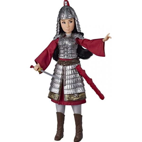 La Muñeca Hasbro ideal para jugar con amigos y familiares, tiene el pelo largo y negro, dos atuendos y divertidos accesorios, su traje de guerrera rojo, cinturón, casco, armadura, espada y accesorios de vaina.
