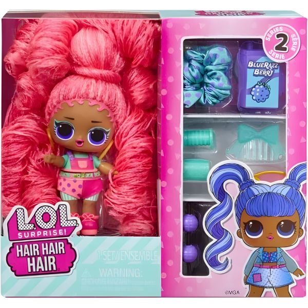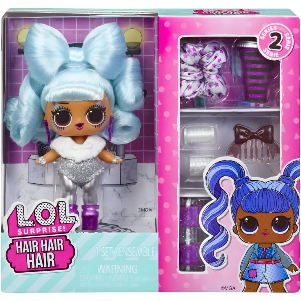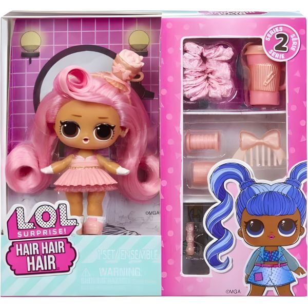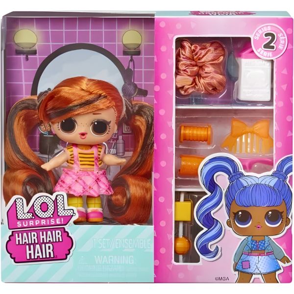 La Muñeca L.O.L. Surprise! Hair Hair Hair Serie 2 es un conjunto creativo y colorido diseñado para proporcionar ratos de diversión y entretenimiento a niños mayores de 4 años. La muñeca viene con cabello real y sorprendentes accesorios para el cabello para disfrutar cepillando, peinando y así prepararla para el próximo evento imaginario. Además, al bañar a la muñeca revela una sorpresa de cambio de color, agregando una dimensión mágica a la experiencia de juego.Observación:El set es enviado de manera aleatoria, sin distinción de color.