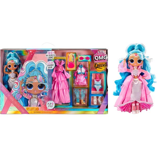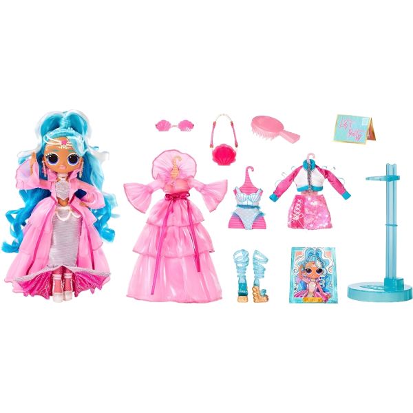 La Muñeca L.O.L. Surprise Fashion Show Lady Braids para Múltiples Peinados es una opción colorida y divertida con capacidad de cambiar la imagen de la muñeca utilizando la espuma para pelo WOW y herramientas de peinado incluidas. Permite crear trenzas, frizado, rizos, ondas, cabello lacio y más, todo sin usar calor. Lady Braids tiene características deslumbrantes, un cabello perfecto para peinar y cuerpo articulado para diferentes poses creativas. El set incluye: 1 muñeca OMG Fashion Show, outfit, aretes, brazalete con anillo de diamantes, zapatos, lentes glamorosos, gargantilla enjoyada, cinturón, elásticos transparentes para el cabello, hebilla para el cabello, gomitas para pelo, pinza para el cabello con gemas, rizador de cabello, combinación de cepillo/peine, WOW Magic Mousse y revista.
