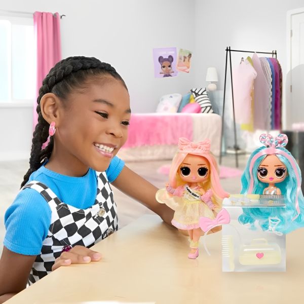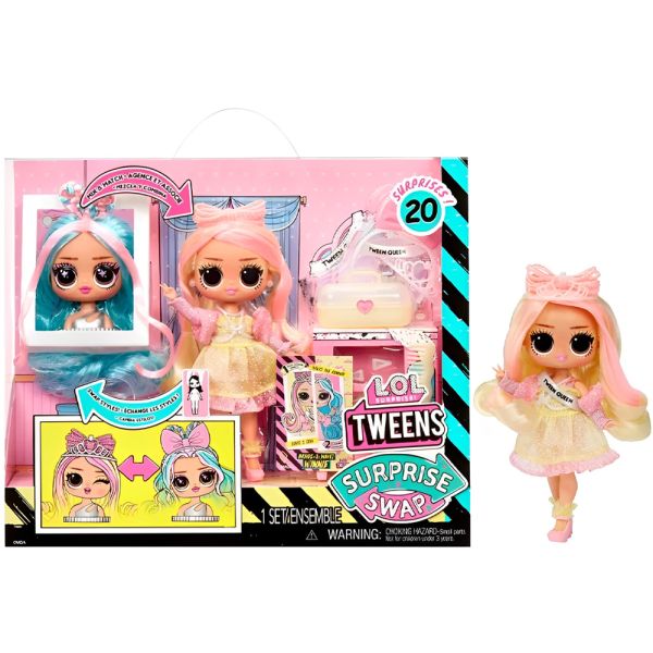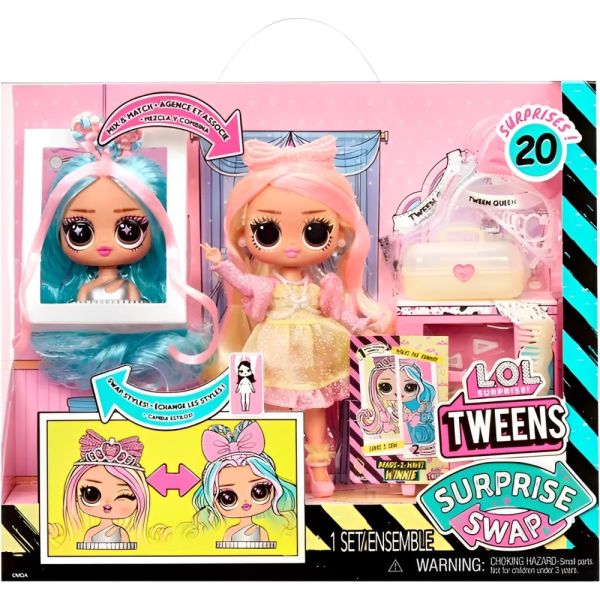 La Muñeca L.O.L. Surprise! Tweens Surprise Swap Braids-2-Waves Winnie es el regalo perfecto para niñas de 3 años en adelante. Con esta muñeca, la creatividad no tiene límites gracias a sus dos looks únicos y una innovadora función de cambio de torso que permite una personalización total. Descubre más de 20 sorpresas emocionantes, que incluyen una cabeza para peinar, ropas y accesorios fabulosos. Los peinados y atuendos se pueden intercambiar para crear infinitos looks combinados, ofreciendo horas de diversión y juego interactivo. El cabello hermoso y el estilo glamoroso de la Muñeca L.O.L. Surprise! Tweens Surprise Swap Braids-2-Waves Winnie, junto con sus impresionantes características y accesorios, garantizan una experiencia de juego enriquecedora. Todos los accesorios se pueden almacenar de manera ordenada, ayudando a mantener todo en su lugar y listo para el próximo momento de creatividad.