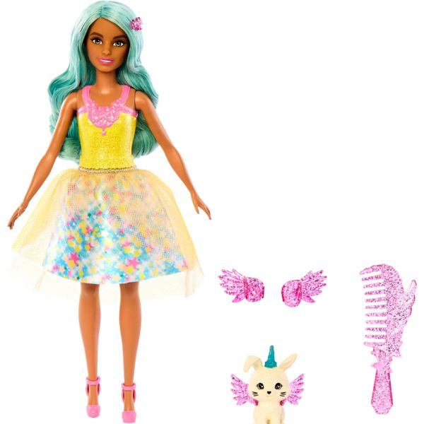 La Muñeca Mattel Barbie A Touch Of Magic Hermanas HLC34 es el regalo perfecto para los niños que desean explorar el mágico mundo de Barbie. Inspirada en el cautivador aspecto de los dibujos animados, esta muñeca se viste con trajes brillantes, adornados con una falda peplum y elegantes detalles de alas, que capturan la esencia de un cuento de hadas. Este colorido diseño no solo atrae la atención, sino que también fomenta el juego imaginativo, permitiendo a los niños crear sus propias aventuras mágicas. Además, la muñeca viene acompañada de una adorable mascota y un peine, ofreciendo más oportunidades para el juego creativo y la personalización del estilo. Ideal para niños mayores de 3 años.