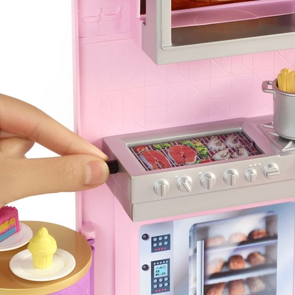 Descubre la magia del mundo culinario con la Muñeca Mattel Barbie Cook 'n Grill Restaurant (HBB91) con Accesorios. Este increíble set de juego está diseñado para inspirar a las niñas a convertirse en pequeñas chefs y emprendedoras. Con un diseño moderno y vibrante, el restaurante cuenta con 6 áreas de juego cuidadosamente detalladas, aumentando la creatividad y diversión. La muñeca Barbie toma pedidos en el autoservicio o puede recibir hasta 4 clientes en la barra o en un reservado del patio. En la cocina, vive la experiencia de preparar hamburguesas en una parrilla giratoria y crea deliciosos dulces con la vitrina giratoria de postres. Además, inserta una pizza en el horno y observa cómo cambia de color al presionar la palanca, indicando que está lista para servir. El set incluye más de 30 piezas como caja registradora, menús, máquina de refrescos, platos, utensilios y accesorios de bebidas, ofreciendo un sinfín de posibilidades para contar historias y desarrollar habilidades sociales y creativas. Este producto es perfecto para niños a partir de 3 años que adoran el juego de roles y las aventuras gastronómicas.