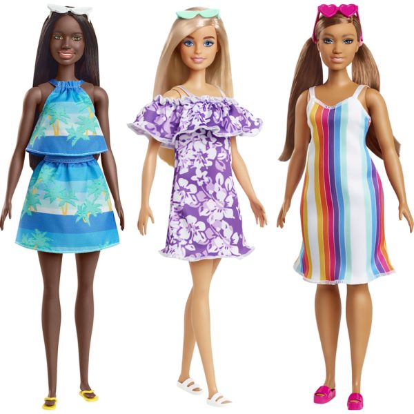 Contiene: 1 muñeca Barbie (29.21 cm), ropa, 1 par de lentes de sol y 1 par de sandalias