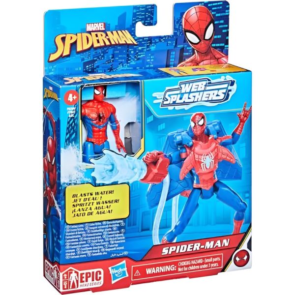 El Muñeco Hasbro Marvel Spider-Man Aqua Web Warriors de 10 cm es perfecto para quienes desean recrear las emocionantes escenas de batalla del universo Marvel. Esta figura de acción de Spider-Man, diseñada para niños a partir de 5 años, cuenta con 9 puntos de articulación, lo que permite una gran variedad de poses dinámicas. Con un accesorio de mochila para juegos acuáticos, este juguete proporciona una experiencia única: el accesorio se puede llenar con agua y, al apretar la figura, Spider-Man lanza un chorro de agua, agregando una dimensión extra de diversión a las aventuras de los pequeños superhéroes. Diseñado por Hasbro, este muñeco forma parte de la serie Aqua Web Warriors, que ofrece personajes icónicos del mundo de Spider-Man, tanto héroes como villanos. La alta calidad de los materiales y el detallado diseño hacen que sea una pieza duradera y visualmente atractiva para cualquier joven fanático de Marvel. Ya sea en el jardín, durante el baño o en la piscina, las posibilidades de juego son infinitas. Adquiere el Muñeco Hasbro Marvel Spider-Man Aqua Web Warriors y deja volar la imaginación de los niños mientras combaten el mal como sus superhéroes favoritos.