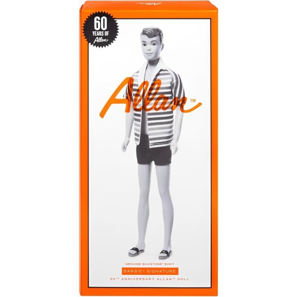 El Muñeco Mattel Barbie Signature Vintage Allan del 60.º Aniversario HRM87 es una reproducción fiel del famoso amigo de Ken, Allan, con un toque contemporáneo que deleitará a cualquier amante de Barbie. Diseñado en Silkstone, este Allan de edición limitada revive el encanto retro con un look de playa groovy. Luce una vibrante chaqueta a rayas sobre un traje de baño azul marino y sandalias a juego, evocando el estilo desenfadado de los años 60. Sus detalles auténticos incluyen cabello rojo esculpido y una etiqueta vintage que rinde homenaje al Allan original de 1964. Ideal para exhibiciones o para enriquecer cualquier colección, el Muñeco Mattel Barbie Signature Vintage Allan del 60.º Aniversario es una adquisición imprescindible para quienes aprecian la historia y la evolución de Barbie.