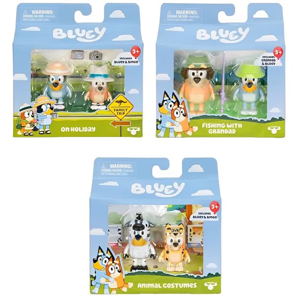 Los Muñecos Bluey 17648 - Personajes Surtidos son inspirados en los episodios más entrañables del show, como “De Vacaciones”, “Pesca con el Abuelo” y “Disfraces de Animales”, estos sets temáticos permiten a los niños recrear sus momentos favoritos de Bluey o inventar nuevas aventuras. Cada paquete incluye dos figuras articuladas, con brazos y cuerpos móviles, ideales para manos pequeñas y para potenciar el juego interactivo, lo que las hace fáciles de manipular y perfectas para el juego libre. Además, vienen acompañadas de accesorios únicos, listos para usar desde el primer momento. Perfectos para coleccionar, combinar y contar historias sin límites, estos muñecos fomentan la imaginación, creatividad y juego simbólico.