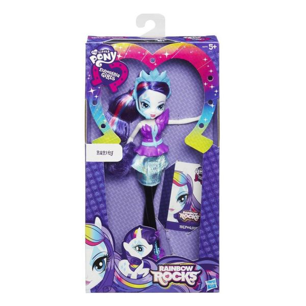 Tu muñeca Rarity viene elegantemente vestida con un aspecto ultra chic y presenta su característico toque cutie, un diseño único similar a la cutie mark en su alter ego pony.Viene con una falda y zapatos de moda intercambiables, y te encantará compartir estilos entre ella y otras muñecas My Little Pony Equestria Girls (cada una se vende por separado).¡Ella también tiene su propia tarjeta de identificación de miembro de Canterlot High!¡Cambia las faldas y los zapatos por la máxima diversión de moda con tu muñeca Rarity súper elegante!La muñeca viene con falda, zapatos y tarjeta de colección.