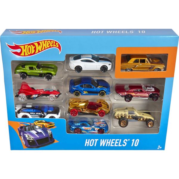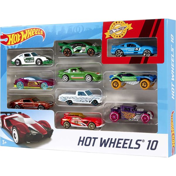 Descubre la emocionante colección de Hot Wheels que presenta paquetes listos para la carrera con vehículos fundidos a presión, altamente detallados. Este conjunto de 10 autos Hot Wheels te permite experimentar diez veces la acción, ideal para coleccionistas de todas las edades. Con un diseño temático excepcional, detalles auténticos y decoraciones llamativas, son el regalo perfecto tanto para niños como para apasionados de los autos.Observación:Este producto viene desde el fabricante en forma de un surtido variado de modelos y/o colores (sin selección posible). Cada paquete se vende por separado, sujeto a disponibilidad. Los colores y las decoraciones pueden variar.