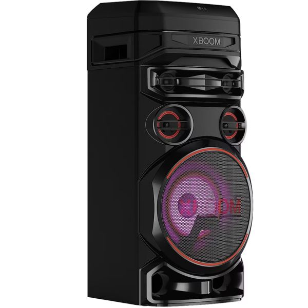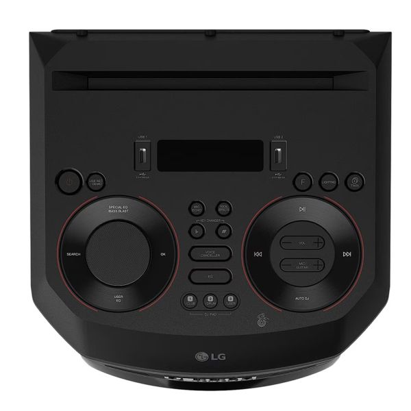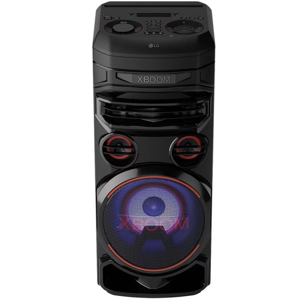 El parlante LG XBOOM RNC7 Super Bass Boost tiene un sonido potente y excepcional para animar tus reuniones y eventos. Este potente parlante ofrece una experiencia musical inigualable con bajos profundos y sonido envolvente. El Super Bass Boost genera un flujo de aire extra detrás de la unidad del parlante para producir bajos potentes que dan vida a todas las reuniones. Ilumina la pista de baile con las luces multicolor, las luces LED de colores cambian con el ritmo de la música para aumentar la emoción de tus fiestas. Conecta hasta 3 dispositivos móviles y mantenlos en alto mientras la luz de la linterna se mueve al ritmo de la música. Ajusta el volumen de la música y del micrófono por separado, reduce las voces de las canciones con el Voice Canceller y ajusta la tonalidad de tu voz para que se sincronice con la música activando el Key Changer. Llena tu espacio con música de alta potencia y convierte cada ocasión en una fiesta inolvidable. Conecta la guitarra y haz que todos bailen o canten. Tiene puerto USB para reproducir música y también puede sintonizar su emisora radio FM favorita. Además, permite vincular tres dispositivos al mismo tiempo a través de la aplicación XBOOM. Utiliza alguno de los dispositivos conectados para controlar una playlist sin interrumpir la música.