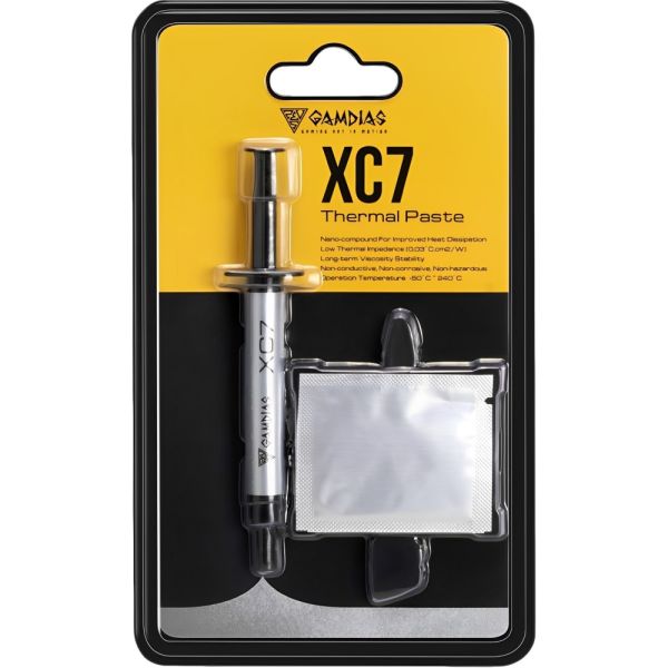 La Pasta Térmica Gamdias XC7 es una solución térmica avanzada diseñada para ofrecer la máxima eficacia en la transferencia de calor, esencial para aquellos que buscan mantener su PC funcionando en condiciones óptimas. Esta pasta térmica cuenta con una alta conductividad térmica de 6 W y una baja impedancia térmica de 0.03°C -cm²/W, lo que garantiza que el calor se disipe de manera eficiente desde la CPU hacia la placa base. Fabricada con un material de base nanocompuesto, el Gamdias XC7 rellena eficazmente las microfisuras para maximizar la superficie de contacto térmico. Su no conductividad eléctrica añade un nivel adicional de seguridad en su aplicación, evitando riesgos de cortocircuitos. Además, su rango de temperatura de funcionamiento de -50℃ a 240℃ hace que sea ideal para diversas aplicaciones, desde PCs de gaming hasta estaciones de trabajo intensivas.