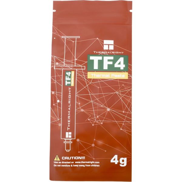 La pasta térmica Thermalright TF4 en color gris ofrece una conductividad térmica excepcional de 9,5 W/mK, asegurando una eficiente disipación de calor con su baja impedancia térmica (<0,0068 ℃-cm2/W). Su amplio rango de temperatura utilizable (-50 ℃ / 240 ℃) la hace adecuada para diversas aplicaciones, mientras que su formulación no conductora eléctricamente y su naturaleza inofensiva garantizan una aplicación segura y confiable, mejorando la eficiencia térmica y prolongando la vida útil de los componentes electrónicos y de informática.