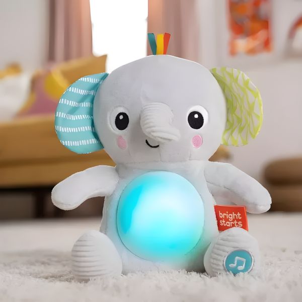 Hug-a-Bye Baby de Bright Starts es un adorable peluche musical diseñado para brindar suavidad y seguridad a tu bebé desde el primer día. Este encantador elefante ofrece una experiencia sensorial completa con más de 20 minutos de melodías relajantes y luces que se activan con un simple apretón en su pie. Confeccionado con un 85% de tela y un 15% de plástico, este peluche no solo es acogedor, sino también seguro para el juego diario de tu pequeño. Recomendado para bebés de 0 meses en adelante, el peluche cuenta con dos modos de reproducción: uno para música continua y otro para melodías cortas, adaptándose a las preferencias de entretenimiento de tu bebé. La barriga del elefante se ilumina al ritmo de las melodías, brindando un reconfortante resplandor que capturará la atención de tu bebé. Además de estimular el sentido auditivo y visual, este juguete fomenta el desarrollo de habilidades motoras finas a través de diversas texturas, arrugas y etiquetas para explorar. Hug-a-Bye Baby no solo es un compañero de juegos, sino también un chupete suave y acogedor del tamaño de un elefante. Con su diseño multifuncional, este peluche musical se convierte en una adición encantadora a las rutinas nocturnas y a los momentos de juego durante el día. Deja que tu bebé disfrute de la magia reconfortante de Hug-a-Bye Baby de Bright Starts.