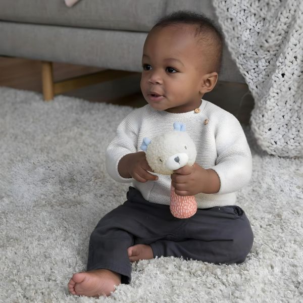 El Peluche Sonajero Ingenuity KD12370 Nate el Osito - 15.9 cm es un adorable juguete que estimulará el desarrollo de habilidades de aprendizaje en los más pequeños. Con su suave textura y diseño de osito, este peluche sonajero capturará la atención de los bebés y les brindará horas de diversión y entretenimiento. Este peluche sonajero es perfecto para desarrollar la motricidad fina, ya que promueve el agarre y la coordinación mano-ojo. Los bebés podrán agarrar y sacudir el juguete, lo que les ayudará a desarrollar sus destrezas motoras. Con un tamaño de 15.9 cm, este peluche sonajero es perfecto para que los bebés lo agarren y lo lleven a todas partes. Además, su diseño de osito hará que se convierta en el compañero perfecto de juego y aprendizaje.