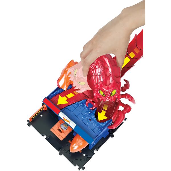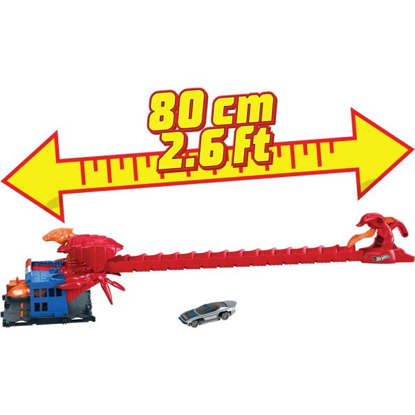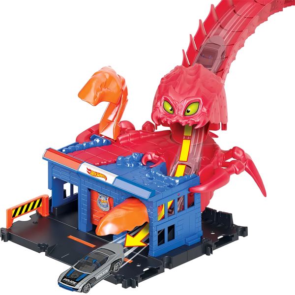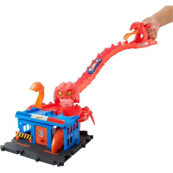 Prepárate para una emocionante aventura en la estación de policía con el set Hot Wheels City Scorpion Flex Attack. Un sigiloso escorpión llamado Sven ha atacado, y los niños deberán lanzar sus vehículos en caída libre a lo largo de la cola de 76 cm para escapar a toda velocidad. Con dos rutas de escape, los vehículos pasarán por la estación de policía y evitarán las garras de Sven.Este set incluye un vehículo Hot Wheels y se puede conectar con otros sets para ampliar la diversión y crear un emocionante paisaje urbano lleno de criaturas. Los niños querrán coleccionarlos todos. (Cada set se vende por separado y está sujeto a disponibilidad de colores y decoraciones).Perfecto para niños de 4 a 8 años, este regalo ofrecerá horas de emoción y aventura mientras desafían a Sven el escorpión y exploran las increíbles posibilidades narrativas que ofrece Hot Wheels City Scorpion Flex Attack. No te pierdas esta oportunidad de acción y diversión con los juguetes Hot Wheels.