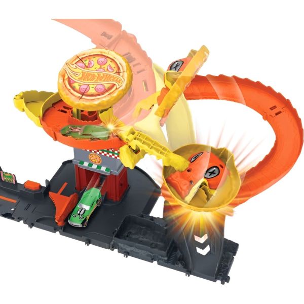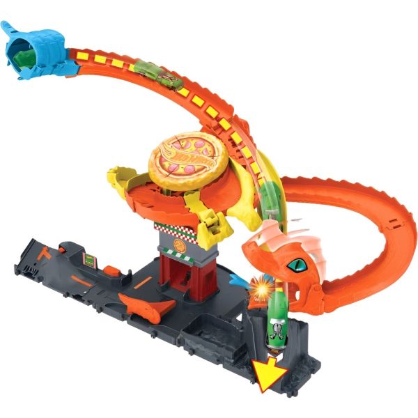 Contiene: 1 juego Hot Wheels City Pizza Slam Cobra Attack y 1 coche Hot Wheels.