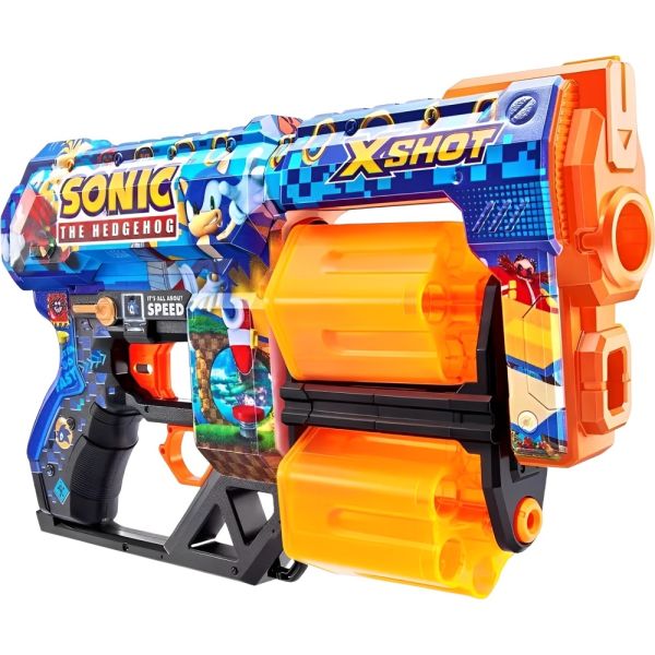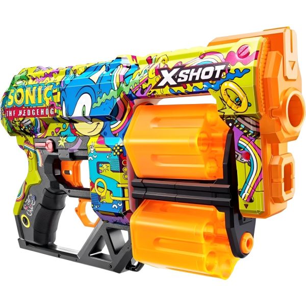 La pistola de juguete Zuru X-Shot Skins Dread Sonic ofrece una experiencia de juego emocionante y segura para los niños. Su diseño ergonómico y resistente la hace ideal para la diversión al aire libre. Equipada con la innovadora tecnología de dardo Air Pocket, esta pistola proporciona un alcance de disparo impresionante de hasta 27 metros aproximadamente. Con una capacidad de 12 dardos y barriles giratorios dobles, la Dread Sonic está lista para la acción y puede enfrentarse a la competencia desde largas distancias, asegurando horas de diversión. Está recomendada para niños de 8 años en adelante, viene con 12 dardos y presenta un estampado diferenciado.
