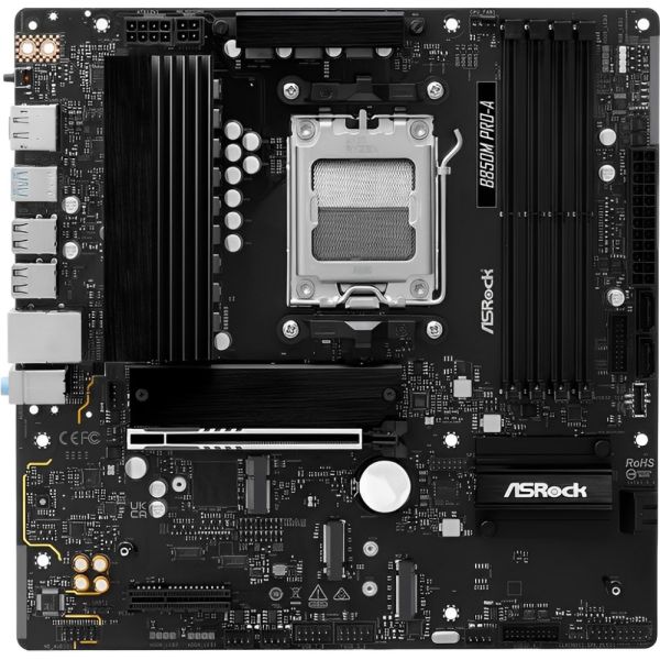 La Placa Madre ASRock B850M PRO-A AM5 DDR5 es la elección perfecta para usuarios que buscan estabilidad, durabilidad y un rendimiento superior en sus proyectos informáticos. Diseñada con un chipset B850 y soporte para procesadores AMD Ryzen 7000, 8000 y 9000, esta placa base asegura compatibilidad de última generación. Su diseño mATX compacto la hace ideal para configuraciones de escritorio personalizadas, ofreciendo eficiencia sin sacrificar espacio. Con soporte para memoria DDR5 de hasta 8000+(OC), y compatibilidad con perfiles XMP y EXPO, esta placa madre garantiza un rendimiento de memoria excepcional, ideal para entusiastas del overclocking. La ASRock B850M PRO-A está equipada con un disipador de calor de aluminio que optimiza la gestión térmica, asegurando un funcionamiento estable incluso bajo cargas de trabajo intensas como el gaming o la creación de contenido. La conectividad es otro punto fuerte, destacando su interfaz Dragon 2.5 Gb/s LAN para una red más rápida y eficiente, y múltiples opciones de salida gráfica, incluyendo HDMI 2.1 y DisplayPort 1.4. La inclusión de una solución M.2 de alta velocidad PCIe Gen5 Blazing M.2 permite velocidades de transferencia inigualables, elevando la experiencia de usuario a nuevos niveles. Además, el diseño elegante con iluminación POLYCHROME RGB ofrece opciones de personalización visual que se adaptan a cualquier estilo. La ASRock B850M PRO-A es la definición de una solución robusta y confiable para las necesidades informáticas modernas.