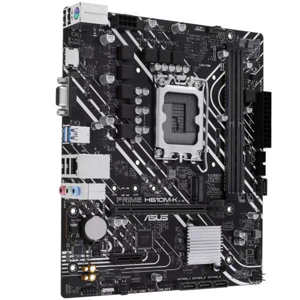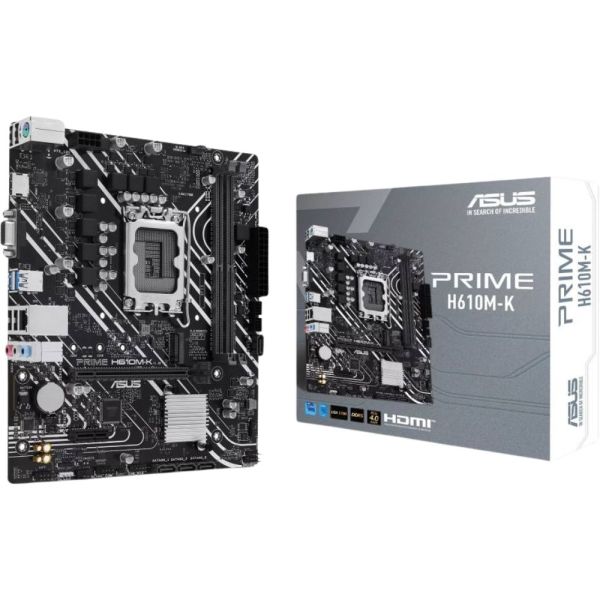 La placa madre Asus Prime H610M-K DDR5 LGA 1700 es una excelente opción para aquellos que buscan un rendimiento y una capacidad de actualización óptimas. Diseñada en formato Micro ATX, esta placa madre es ideal para sistemas de tamaño reducido. La placa madre Asus Prime H610M-K DDR5 LGA 1700 cuenta con el socket 1700, lo que permite la compatibilidad con los últimos procesadores de Intel. La tecnología DDR5 brinda una velocidad y eficiencia mejoradas, proporcionando un rendimiento de primera calidad para satisfacer las necesidades de los usuarios más exigentes. Las placas base de la serie Asus Prime están diseñadas por expertos para liberar todo el potencial de los procesadores Intel® de 13.ª y 12.ª generación. Con un diseño de energía robusto, soluciones integrales de enfriamiento y opciones de ajuste inteligentes, Prime H610 ofrece a los usuarios y constructores de PC una gama de opciones de ajuste del rendimiento a través de funciones intuitivas de software y firmware.Especificaciones:Factor de Forma:Micro-ATX.Socket de procesador:LGA1700.Memoria RAM: 2 x DIMM,DDR5 5600, 5400, 5200, 5000, 4800 Memoria sin búfer y sin ECC.Procesadores:Intel Socket LGA1700 para procesadores Intel Core de 13.ª generación e Intel Core de 12.ª generación, Pentium Gold y Celeron.Chipset:Intel H610Almacenamiento: 1 x M.2, 4 x Sata 6 Gb/s.Audio:CODEC de audio de alta definición con sonido envolvente Realtek 7.1.Slot de expansión:1x PCIe 4.0 x16,1x ranura PCIe 3.0 x1LAN:1 Ethernet Realtek de 1 GbInterfaz: 1 x PS/2 teclado/mouse, 1 xVGA, 1 x HDMI, 1 xEthernet Realtek de 1 Gb, 4 x USB 2.0 Type-A, 2 x USB 3.2(2 x Tipo-A), 3 x Audio jack(s).