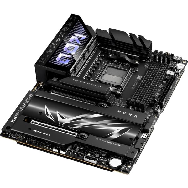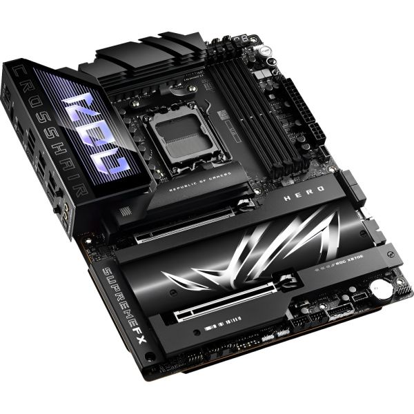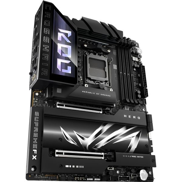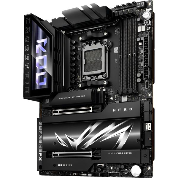 La Placa Madre Asus ROG Crosshair Hero X870E AM5 DDR5 es la opción definitiva para entusiastas del rendimiento y gamers exigentes que buscan aprovechar al máximo los procesadores AMD de última generación. Esta placa base, con factor de forma ATX y chipset X870E, está diseñada para ofrecer una experiencia de usuario superior con compatibilidad para memorias DDR5, brindando un rendimiento excepcional en multitareas y aplicaciones que demandan alto desempeño. Con hasta 192 GB de capacidad de memoria en cuatro ranuras dual-channel DDR5, la Asus ROG Crosshair Hero X870E permite realizar proyectos de gran escala y ejecutar múltiples aplicaciones sin esfuerzo. La conectividad es un punto fuerte, ofreciendo dos ranuras PCIe 5.0 x16 para tarjetas gráficas de última generación y cinco puertos M.2 para almacenamiento rápido y expansivo. Además, su soporte para Wi-Fi 7 y Ethernet de 2,5 y 5 GbE asegura conexiones de red consistentes y de alta velocidad. Ideal para gaming intenso y cargas de trabajo de IA, esta placa madre incluye tecnologías de overclocking avanzadas, como el Conmutador OC Dinámico y AI Overclocking para maximizar el rendimiento de la CPU de manera segura. Las características de refrigeración avanzada garantizan la estabilidad del sistema durante el uso intensivo. Asimismo, su compatibilidad con Windows 11 y la conectividad modernizada con múltiples puertos USB, incluidos USB-C de 20 Gb/s, hacen de la Asus ROG Crosshair Hero X870E una elección inteligente para configuraciones de PC personalizadas de alto rendimiento.