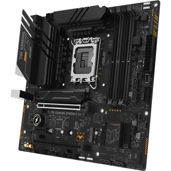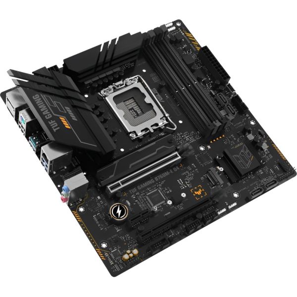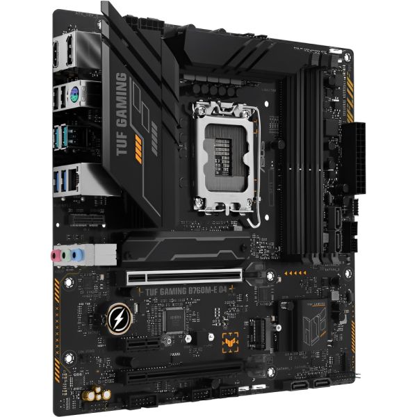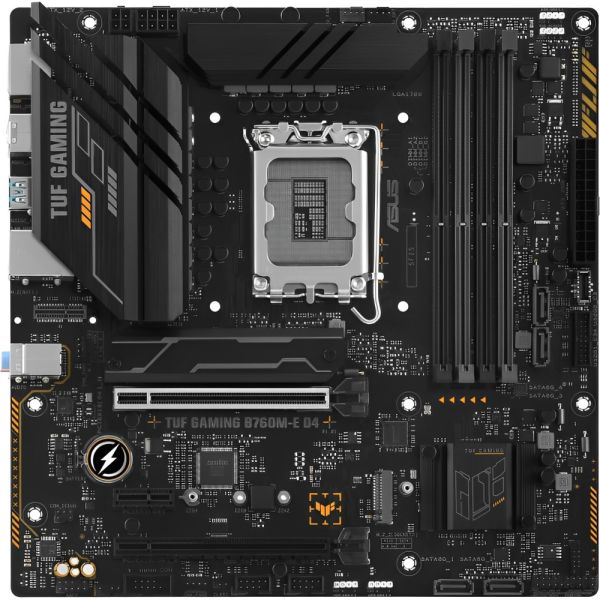 La Placa Madre Asus TUF Gaming B760M-E D4 LGA 1700 DDR4 es la elección perfecta para los gamers y entusiastas de la tecnología que buscan rendimiento y durabilidad. Diseñada para soportar los últimos procesadores Intel® de 14ª y 13ª generación, esta placa base ofrece soporte para memoria DDR4 de hasta 5333 MHz (OC), ofreciendo un rendimiento espectacular en multitarea y juegos. Con un factor de forma mATX y un socket LGA 1700, la TUF Gaming B760M-E D4 es ideal para sistemas compactos y de alto rendimiento. Cuenta con dos ranuras PCIe 4.0 x16, una ranura PCIe 4.0 x1 y múltiples opciones de almacenamiento con dos ranuras M.2 y cuatro puertos SATA de 6Gb/s. Incorpora además un puerto Ethernet Realtek 2.5Gb y soporte para conexiones USB 3.2 Gen 2 y Gen 1, asegurando conectividad rápida y eficiente. El sistema de audio con tecnología Realtek 7.1 Surround y capacitores de alta calidad garantiza una experiencia de sonido envolvente. A esto se suma su diseño robusto con componentes de grado militar, protección TUF y un sistema de refrigeración avanzado, pensado para largas sesiones de juego sin preocupaciones. Eleva tu experiencia de juego con la Asus TUF Gaming B760M-E D4, una placa madre que combina tecnología avanzada, conectividad superior y una durabilidad inigualable, perfecta para cualquier configuración gaming de alto rendimiento.