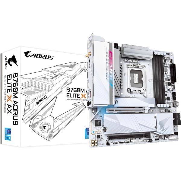 La placa madre Gigabyte B760M AORUS Elite X AX es la elección perfecta para los entusiastas de la informática que buscan un rendimiento superior y características avanzadas. Diseñada para admitir procesadores Intel Core de 13ª y 14ª generación, esta placa brinda una solución VRM de 14+1+1 fases con gemelo digital, garantizando una alimentación estable y eficiente para un rendimiento óptimo. Su soporte DDR5 de doble canal con 4 DIMM y compatibilidad con el módulo de memoria XMP 3.0 asegura una velocidad de memoria impresionante, ideal para tareas de alto consumo de recursos como el gaming y la edición de video. La ranura PCIe UD X proporciona conexión PCIe 5.0 x16 con resistencia 10X, ofreciendo soporte robusto para tarjetas gráficas de última generación. Gracias al diseño innovador EZ-Latch Click y EZ-Latch Plus, la instalación y desinstalación de componentes es ahora más fácil que nunca, sin necesidad de herramientas adicionales. Además, cuenta con puertos de salida que incluyen HDMI y Display Port, permitiendo configuraciones de múltiples pantallas de forma sencilla. Con el almacenamiento ultrarrápido presentado por sus 2 ranuras M.2 PCIe 4.0 x4 y un diseño Micro-ATX compacto, esta placa madre ofrece una solución integral para usuarios que demandan rapidez y eficiencia.