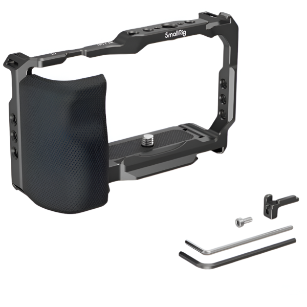 El Cage SmallRig con Grip 3538B para Sony ZV-E10 cuenta con un diseño ergonómico y ligero, ideal para proteger la cámara y facilitar su manejo. Este accesorio permite un mejor control y estabilidad durante el uso, lo que lo convierte en una herramienta esencial para grabaciones y sesiones fotográficas. Es compatible exclusivamente con la cámara Sony ZV-E10.