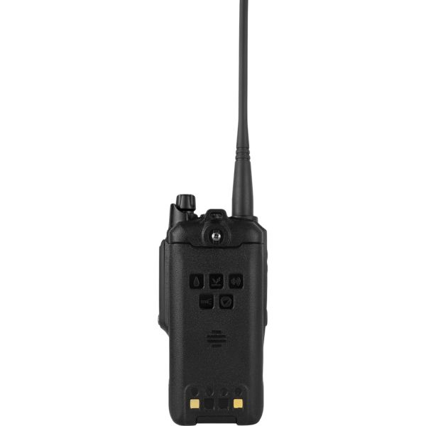 Funciones adicionales: VOX, linterna, alarma de emergencia, doble pantalla y doble espera, bloqueo de canal ocupado, y programación por PC