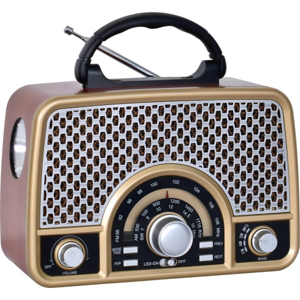 La radio portátil Mega Star RX2153BTG AM/FM Bluetooth es el acompañante ideal para los amantes de la música que buscan calidad y versatilidad en un solo dispositivo. Este modelo combina elegancia y funcionalidad, presentando un diseño clásico en marrón y dorado. Es perfecta para cualquier ambiente, ya sea en interiores o exteriores. Con entradas USB y TF CARD, puedes reproducir tu música favorita desde múltiples fuentes, mientras que la conectividad Bluetooth permite la transmisión inalámbrica desde tu smartphone o tablet. Una de las características destacadas es su función TWS (True Wireless Stereo), que posibilita emparejar dos dispositivos para una experiencia de sonido envolvente. Equipada con una batería recargable, asegura horas de entretenimiento continuo sin necesidad de conexión eléctrica. Además, su linterna LED integrada es una herramienta práctica para actividades al aire libre o emergencias. Con una potencia de 600 W PMPO, la radio portátil Mega Star RX2153BTG garantiza un sonido potente y claro. Ya sea en un picnic, en la playa o simplemente en casa, esta radio ofrece una experiencia auditiva excepcional, adaptándose a las necesidades de cualquier usuario.