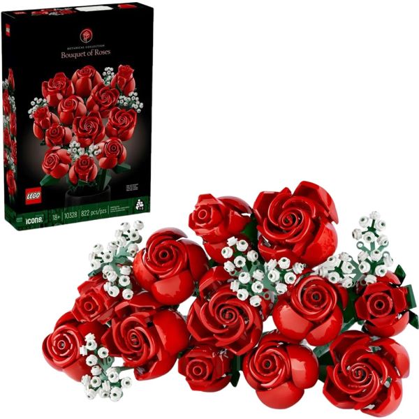 El set LEGOBotanicalRamo de Rosas (10328) es una pieza decorativa de la línea LEGO Botanical, ideal para amantes de la botánica y la decoración. Este ramo artificial, compuesto por 822 piezas, incluye una docena de rosas rojas en diferentes etapas de floración (capullos, semiabiertas y abiertas) y cuatro ramitas de velo de novia, perfectas para colocar en un jarrón. Con instrucciones independientes y seis bolsas de piezas, permite construirlo solo o en compañía, promoviendo la relajación y la atención plena. Es un regalo ideal para ocasiones especiales, como el Día de San Valentín o un cumpleaños, y aporta un toque elegante sin necesidad de mantenimiento.