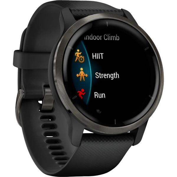El Reloj Smartwatch Garmin Venu 2 Black Slate Bezel la elección perfecta para aquellos que buscan combinar estilo y funcionalidad. Con un diseño elegante en color negro, este reloj inteligente de Garmin no solo destaca por su apariencia, sino también por su impresionante conjunto de características. Está equipado con una pantalla AMOLED de alta resolución que ofrece imágenes nítidas y vibrantes, ideal para visualizar tus estadísticas de salud y deportes. Entre sus características clave se encuentran el monitoreo avanzado de la salud, que incluye seguimiento del sueño, estrés y niveles de energía a través de la tecnología Body Battery™. Además, incluye entrenamientos animados en pantalla para guiarte en tu rutina diaria, una opción ideal para quienes buscan mejorar su condición física. Con más de 25 aplicaciones deportivas precargadas, el Garmin Venu 2 se adapta a múltiples actividades, desde yoga hasta ciclismo. La duración de la batería de hasta 11 días en modo smartwatch asegura que puedas utilizar todas sus funciones sin preocuparte por recargar constantemente, haciéndolo ideal para el uso durante viajes o jornadas laborales extendidas. Benefíciate de sus opciones de conectividad como notificaciones inteligentes, música y Garmin Pay™ para pagos sin contacto. Optimiza tu estilo y rendimiento con el Reloj Smartwatch Garmin Venu 2 - Black Slate Bezel.
