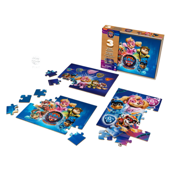 Juego: Rompecabezas de madera con tres diferentes imágenes de la película Paw Patrol Mighty Movie