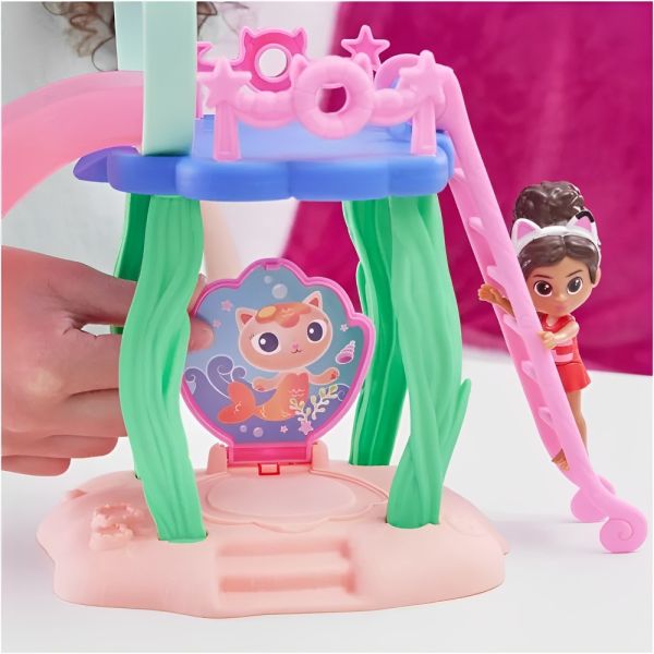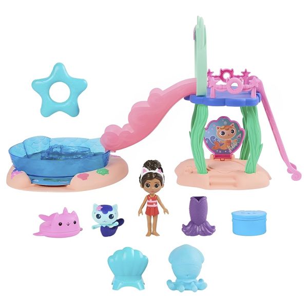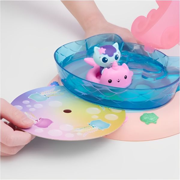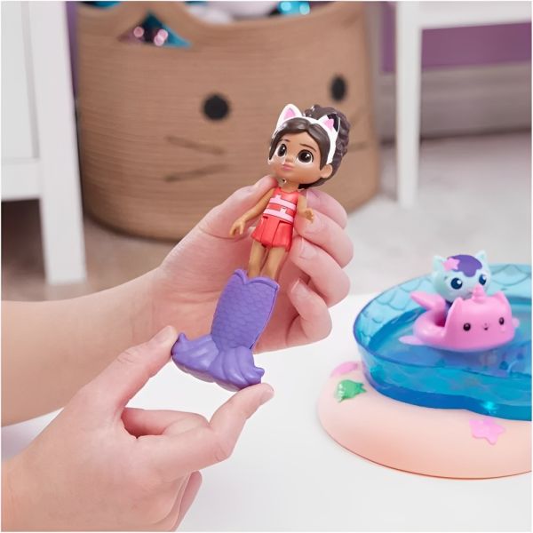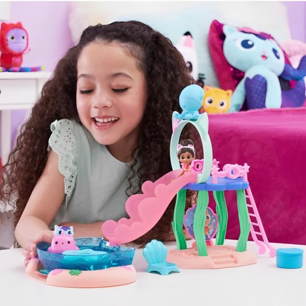 Para vivir aventuras acuáticas emocionantes llegó el set de figuras Gabby's Dollhouse Playset de Piscina. Este increíble conjunto incluye a Gabby y MerCat, quienes están listas para una aventura inolvidable con sus colas de sirena que cambian de color. Diseñado para inspirar la imaginación de los niños, comienza con la apertura de la caja de la casa de muñecas, revelando un juguete sorpresa que se une a la aventura, tal como en el show de Gabby. Ideal para niños que aman las sorpresas y el juego creativo, fomenta el desarrollo de habilidades sociales y narrativas. Los pequeños podrán deslizarse por el tobogán, descubrir el retrato oculto de Sunny Cat en la almeja gigante, y disfrutar de un día lleno de juegos junto a la piscina. Con el rociador de Squiddy Kitty, las colas de sirena de Gabby y MerCat cobran vida al cambiar de color. Después de una jornada llena de diversión, Gabby se relaja en los flotadores de la piscina, haciendo de este playset el complemento perfecto para tardes de juego y aventuras veraniegas. Es una fantástica adición para cualquier fanático de la serie y un regalo ideal para estimular la creatividad.