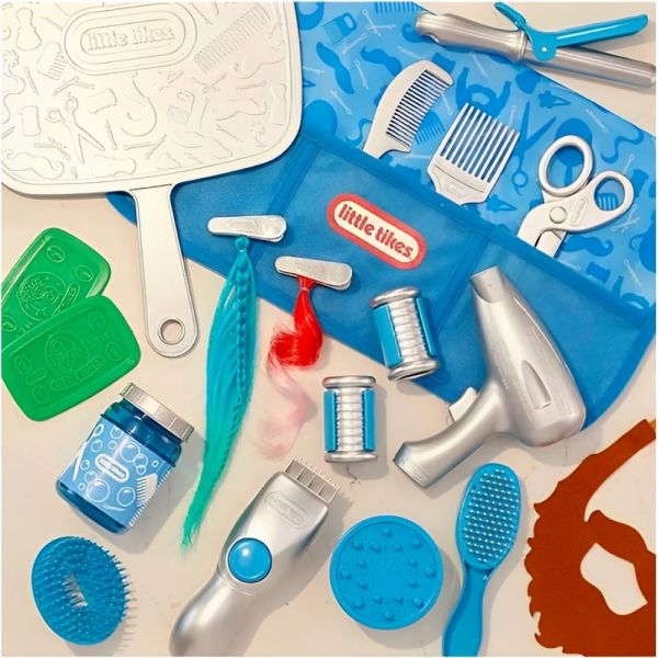 El set de peluquería Unisex Little Tikes es un juguete innovador diseñado para niños a partir de 3 años que transforma el juego en una experiencia de salón de belleza o barbería. Este set de juegos realista incluye una silla giratoria de 360°, permitiendo a los pequeños estilistas atender a sus clientes con facilidad. El secador de pelo que realmente sopla aire y las tijeras que vibran imitan los sonidos reales, proporcionando una experiencia inmersiva. El set está compuesto por 20 accesorios, tales como rizadores, peine, cepillo, tijeras sin corte, espejo seguro para niños, una capa para el cliente y un delantal para el estilista, fomentando el juego de roles y la creatividad. Además, ofrece un práctico espacio de almacenamiento en la silla para organizar todos los utensilios. Este set es ideal para jugar en grupo, ya que varios niños pueden participar a la vez.